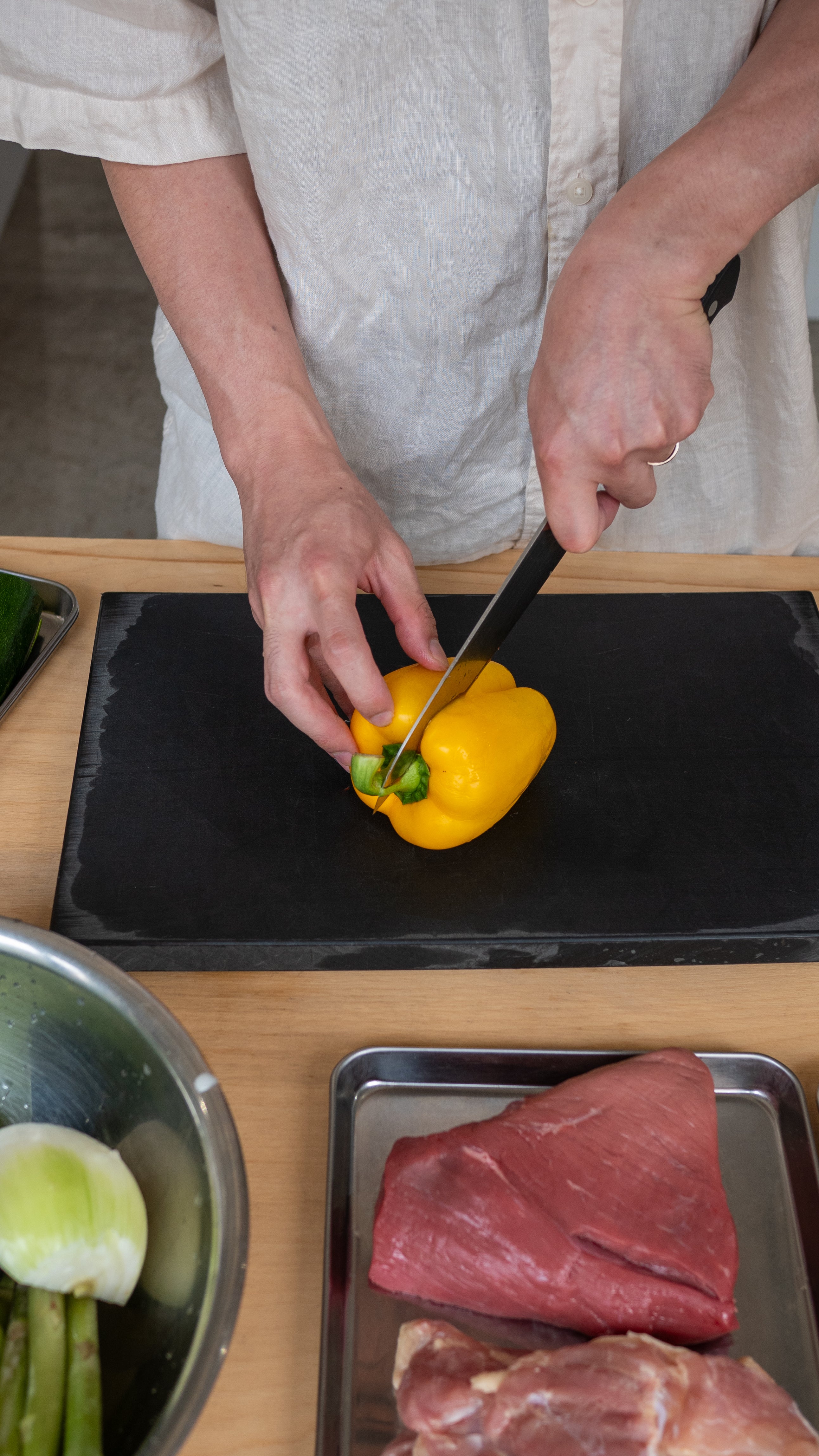 The key to maintaining the sharpness of knives lies in the cutting board. Which is softer and more resilient than typical plastic, this cutting board provides a gentle surface for your knife.